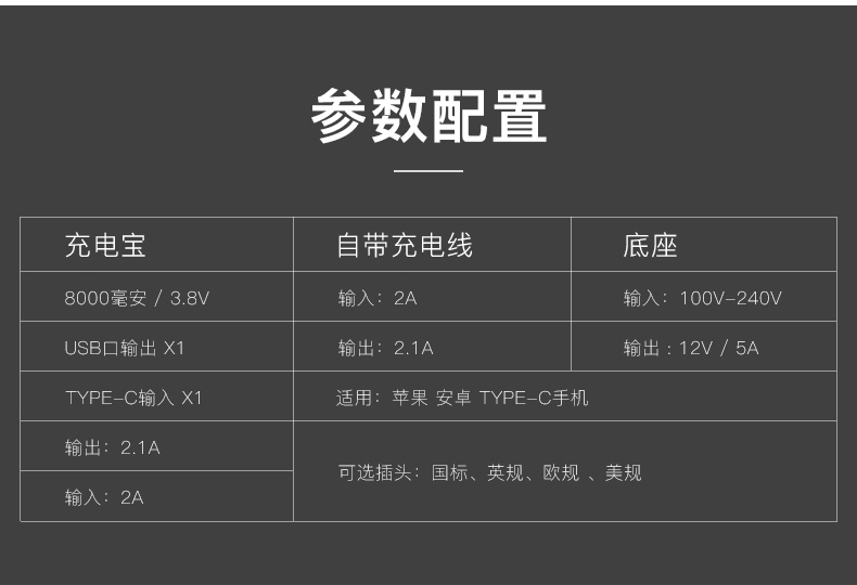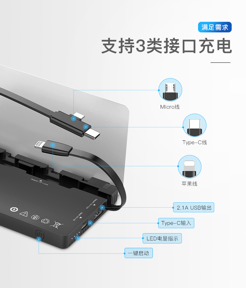 內(nèi)置電纜(支持USB-C,Micro-USB,Lightning)